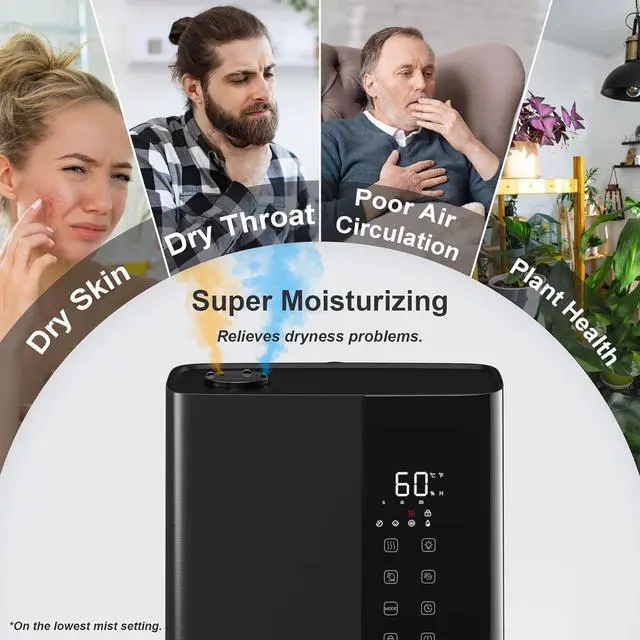 Multifunctional Options Upgrade: This humidifier can adjust mist at 3 levels(low/medium /high )to choice, can adjust humidity 40%-90%, can set auto mode, when the humidity drops below a constant 55%, it automatically starts working, otherwise stop.