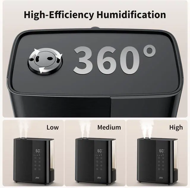 User-friendly Design Top-fill design, just one step to fill the 5L tank. Sleep mode creating a quiet environment for you or baby (operating noise <35dB). 360° rotating nozzles could evenly disperse mist in any direction