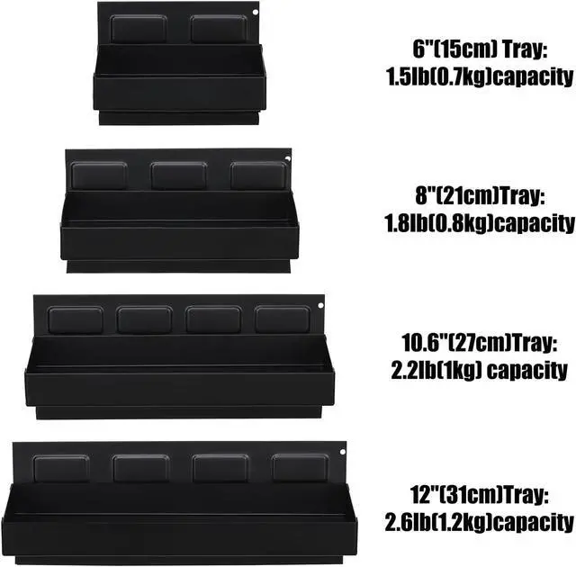 [WEIGHT CAPACITY] 12-inch tray holds up to 2.6 lb., 10.6 -inch holds up to 2.2 lb., 8-inch holds up to 1.8 lb., and 6-inch holds up to 1.5 lb