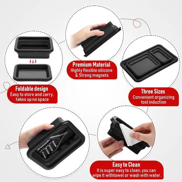 Effortless Cleaning: featuring silicone material, these magnetic parts trays can be cleaned easily, a little soap and water will make them look like new again, if you get into more trouble, you can even use brake cleaner; This simple and convenient cleaning feature helps maintain a clean workspace and promotes improved hygiene standards
