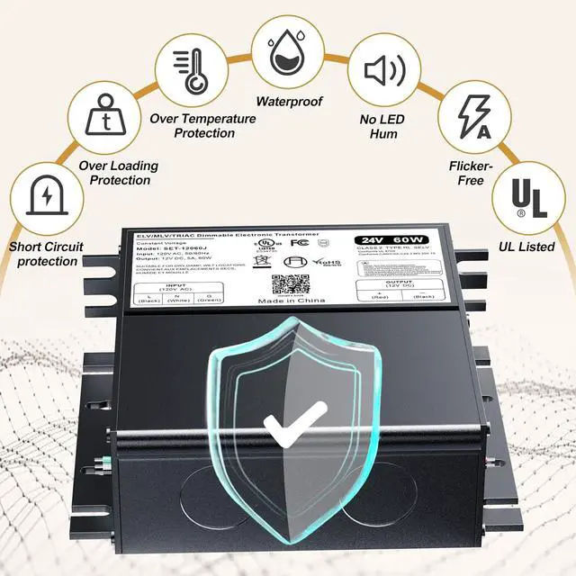 led transfomer includes: UL, cUL listed, Class 2, Class P, Type HL rated. FCC compliant, waterproof for wet or dry use, and lifetime warranty!