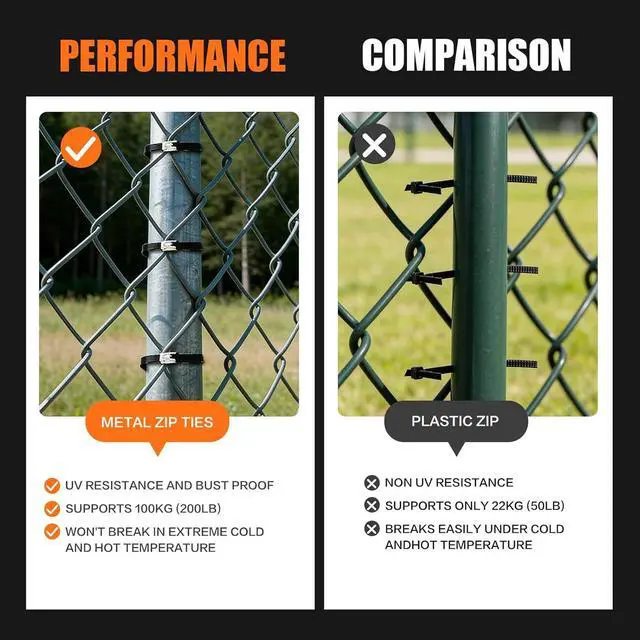 VERSATILE APPLICATIONS: These heavy-duty black metal zip ties are specifically designed for outdoor use in numerous applications such as fencing, gardening, farming, plumbing, roofing, exhaust wraps, pet cages, and more. Built to withstand tough conditions, they are the go-to choice for any challenging outdoor project.