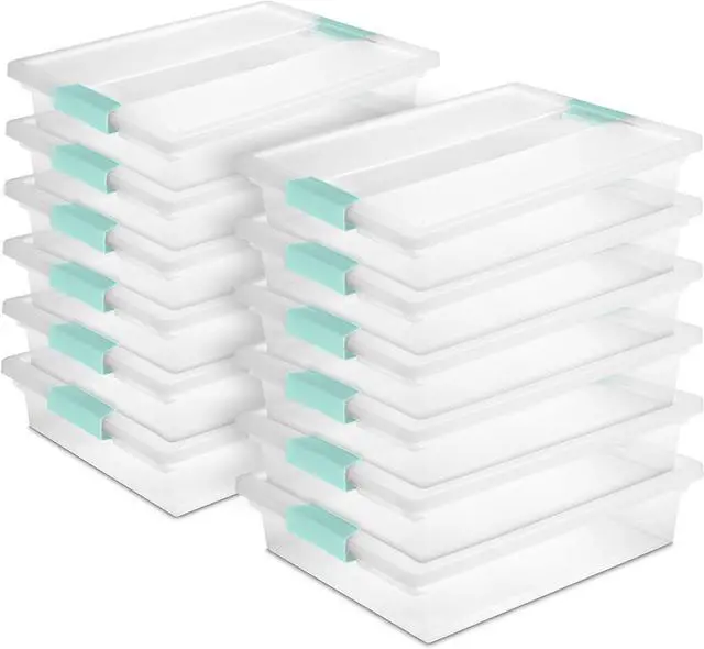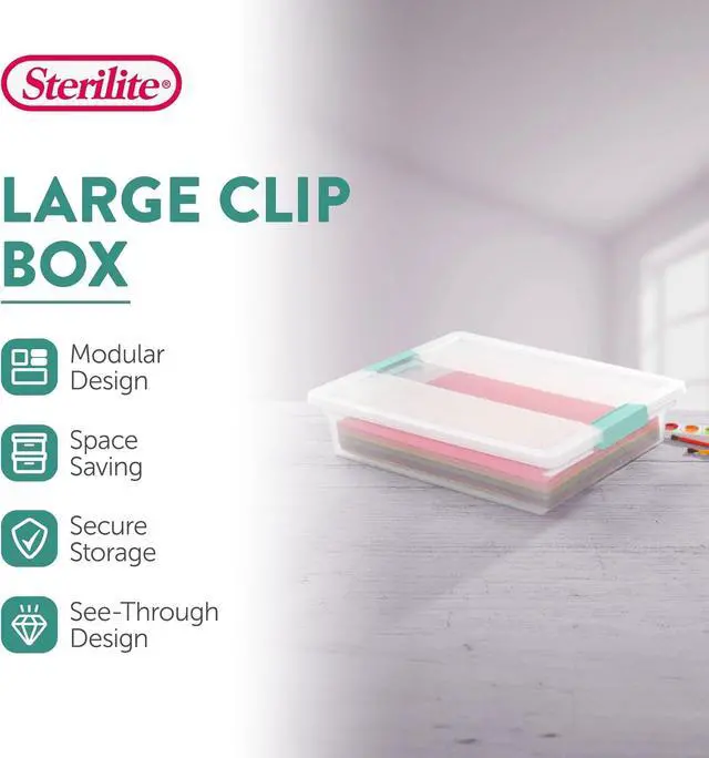 12-Pack Clip Box, Stackable Clear Plastic Bins with Latching Lids, Large - Writing, Arts or Crafts Supplies Storage Containers for Home, Office, Classroom and Workshop Organization