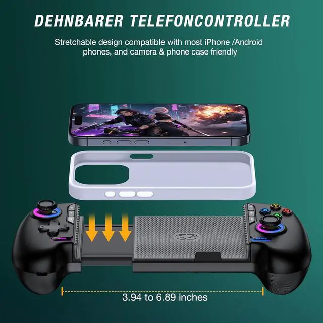 Stretches 4"7" & Fits Phones with Cases No Need to Remove Your Case Expandable grip fits most phones up to 7" wide, including iPhone Pro Max and Galaxy Ultra models with cases on. Secure rubber-lined clamp holds phone firmly.