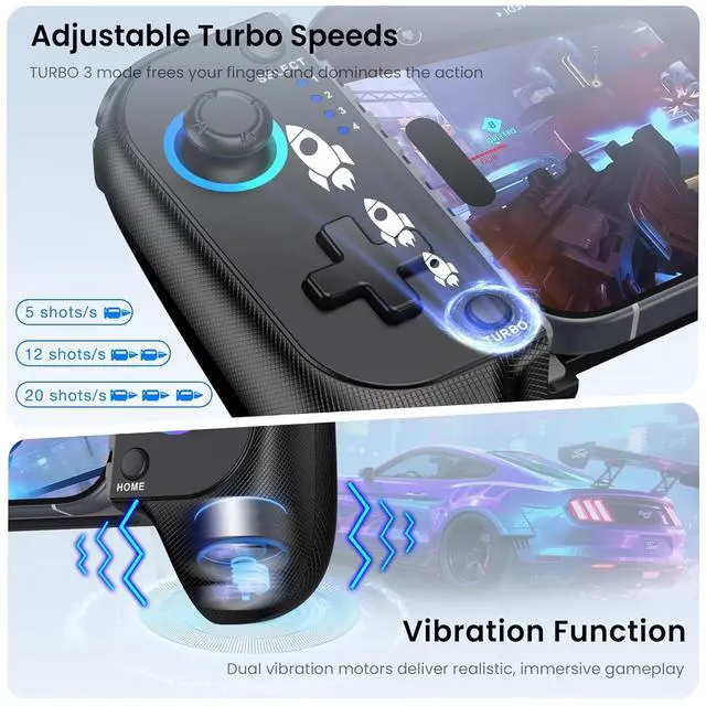 Turbo Speeds & Dual Vibration for Competitive EdgeChoose from 3 turbo speeds (5/12/20 presses per second) for rapid-fire attacks. Dual vibration motors deliver immersive, game-synced feedback to pull you deeper into the action.