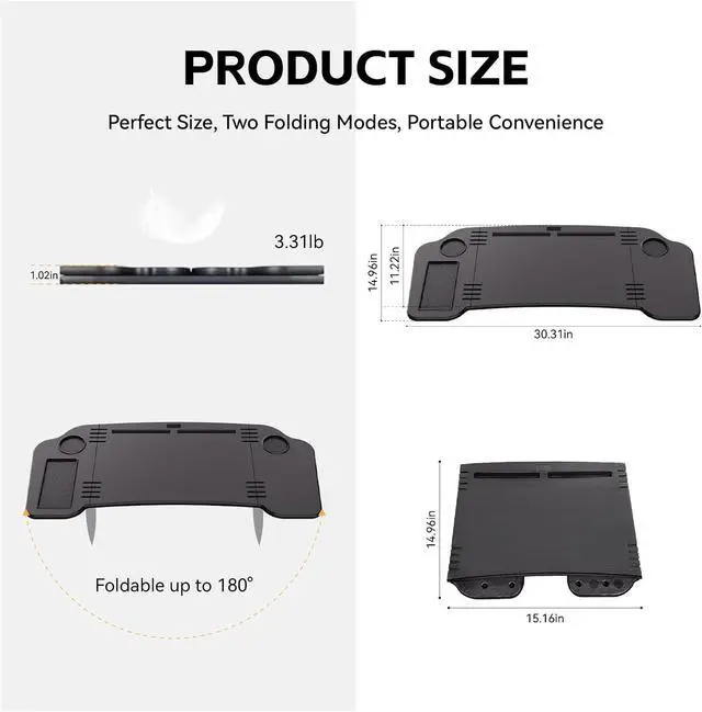 Portable & TravelReady with Easy CleanThis car desk weighs under 3.3 lbs, with sleek carbon-fiber design. Waterproof surface wipes clean easily travel, rideshare, camping, or remote office made simple.