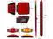 14-1/3" Long x 1-3/16" tall waterproof identification light bar with 3 red 3-LED marker clearance lights is ideal for trailers wider than 80". Polycarbonate lens and stainless steel base. Surface mount. The red strip light bar contains a single lead wire for power and light grounds through mounting hardware; three-light, 3-LEDs each marker light, totally 9LEDs, Red Lens Red LED Light;
