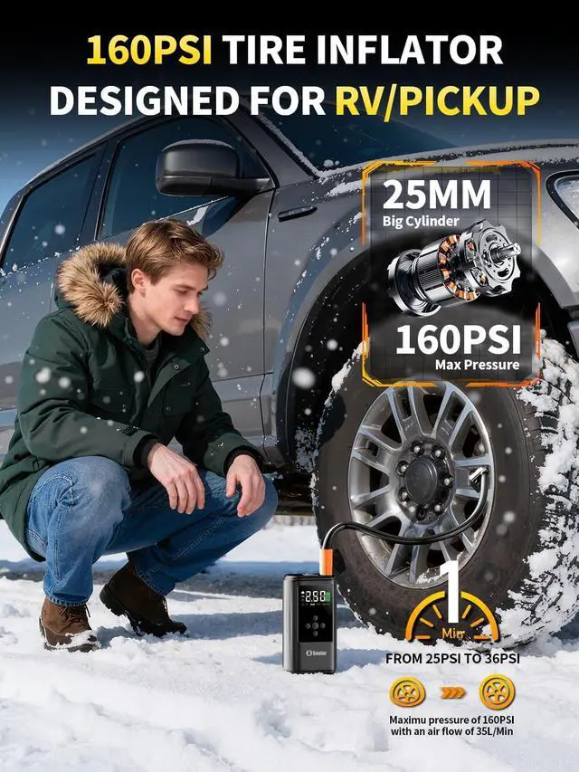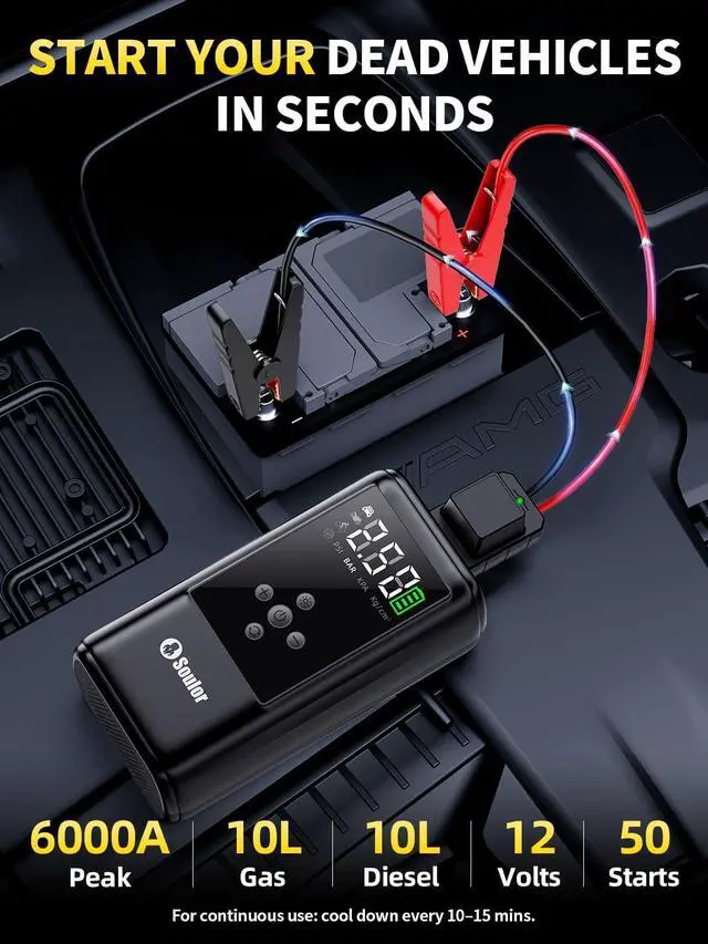 Multifunctional Portable Battery Jumper Starter: Beyond jump starting and 5-in 1 inflating, it works as a portable power bank, quick charger etc. Plus, the 3-in-1 LED flashlight (flashlight/SOS/strobe) suits camping and emergencies. The portable car jump starter multiple solutions for drivers and outdoor lovers.