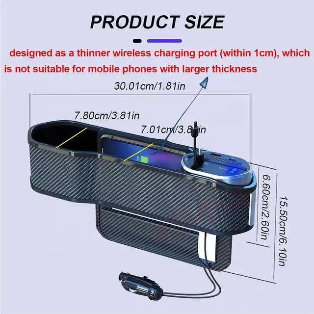 Stylish Carbon Fiber Finish: Enhance your car's aesthetics with our new carbon fiber color option. This car storage box with wireless charging adds a touch of sophistication to your interior, combining style with practicality. You can buy itas a gift for your father husband, wife or friend!