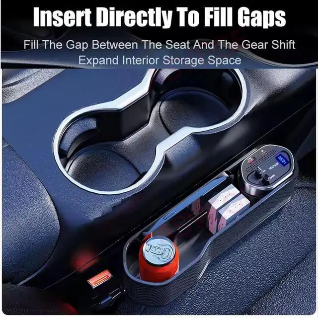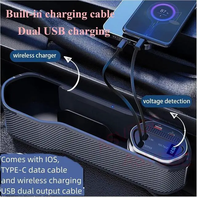 Car Seat Gap Filler Organizer With Cup Holder Front Seat Console Side Pocket With Wireless Charging, Type-C, LightningSpecification:
