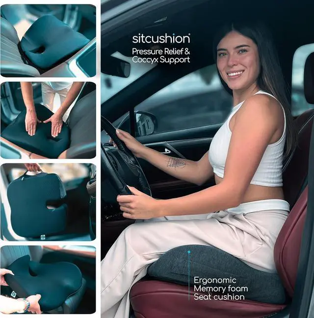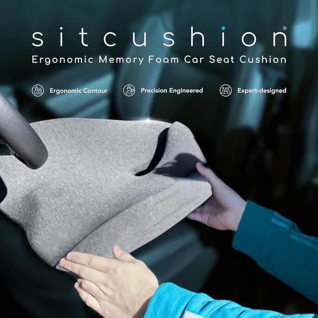 NON-SLIP CAR SEAT CUSHION SECURE FIT WITHOUT STRAPS OR TIES: Does it have straps? No and here's why that's better. The uses a premium anti-slip rubber base that grips your driver seat, office chair, or wheelchair surface firmly from the first placement, staying put through hard turns, sudden stops, and multi-hour drives no straps to tangle, loosen, scratch upholstery, or require constant readjusting. The combination of ergonomic contouring and high-friction rubber backing provides a strap-free, lock-in-place fit on standard car seats.