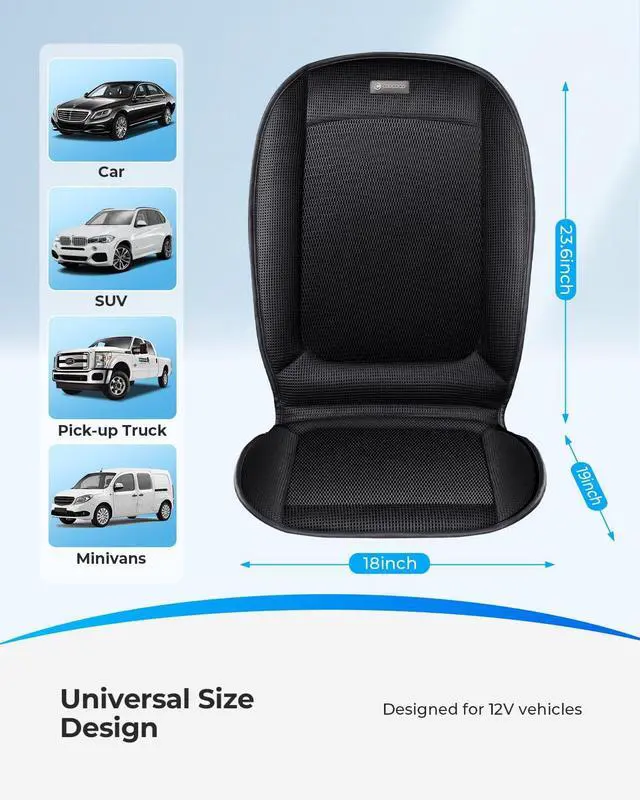 [Universal Fit] The cooling seat cushion is a fit in universalvehicles. It attaches securely with straps in your car, truck, SUV, RV, van, office chair. The Cooling Car Seat Cushion makes a thoughtful gift for work commuters, road travelers, taxicabs or any car owner.