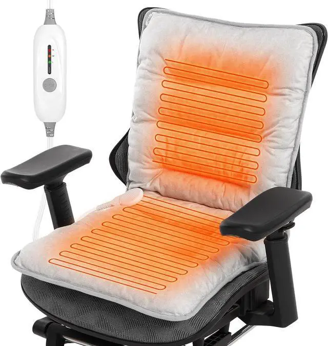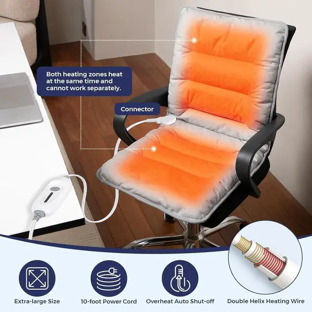 Large Area Heating: The heating pad features dual-zone heating for both the back and seat, providing full-body warmth. With 3 heat settings and a 90-minute auto-shutoff, it ensures safety, energy efficiency, and prevents overheating to avoid burns.