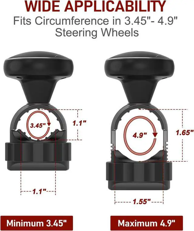 Anti-Slip Safety Design This steering knob for steering wheel features anti-slip silicone inserts that ensure a tight, stable grip, while the ergonomic, palm-contoured shape works to minimize slip risk. The smooth-swiveling design saves effort on turns and parking, reducing shoulder and neck strain. Ideal for daily drivers and commercial use.