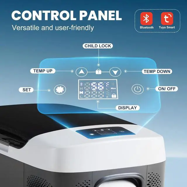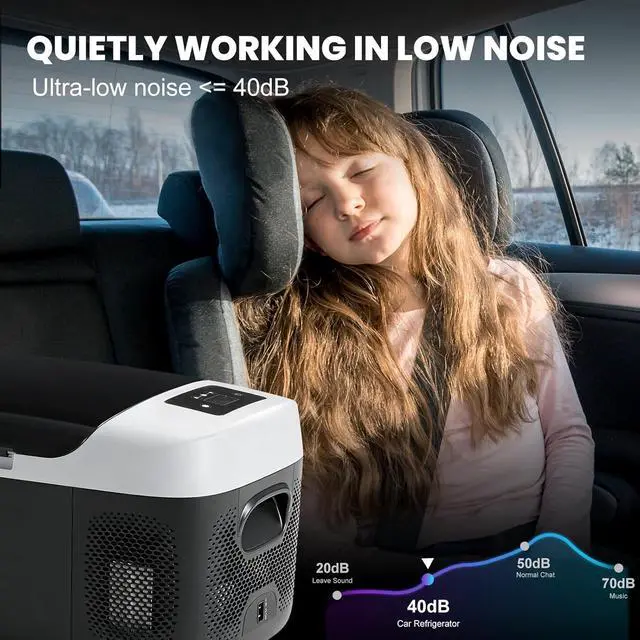 Child-Lock LED Panel: Engineered to minimize noise, this car cooler runs at 40dB for peaceful driving and resting; the LED control panel includes a convenient child-lock function to prevent accidental changes during travel or outdoor use.