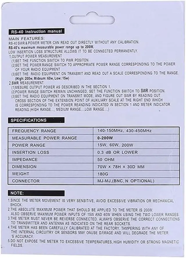 Accuracy 5W Range: (AVG) +/-5%, (REP) +/- 10%