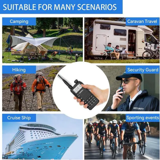 Multiple functions: the walkie talkies have many advantages such as double guarding and double sending working channels, one key fast teaming, VOX voice-activated mode, multiple voice encryption, one-key alarm, etc. It is equipped with monitoring, scanning, busy channel locking, low battery reminder, squelch level, radio, torch and other regular functions, and the dexterous but not losing the calm black business appearance, which makes it a good partner for outdoor enthusiasts, walkie-talkie enthusiasts, and individual users to communicate with each other