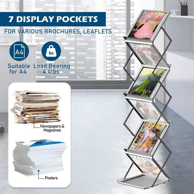 Carrying Bag: The magazine rack display stand is collapsible for easy setup and takedown. It unfolds to a large size and stores compactly. When folded, it fits into the included Oxford fabric carry bag for convenient storage