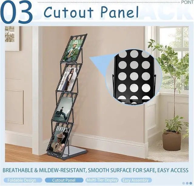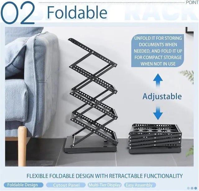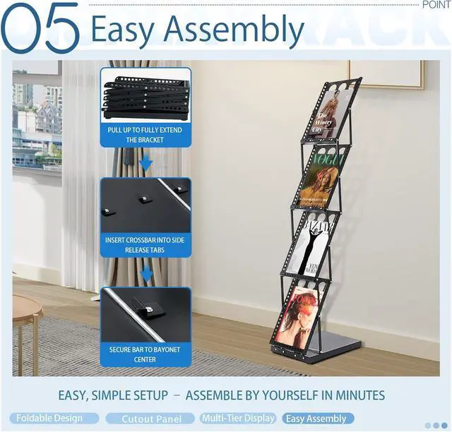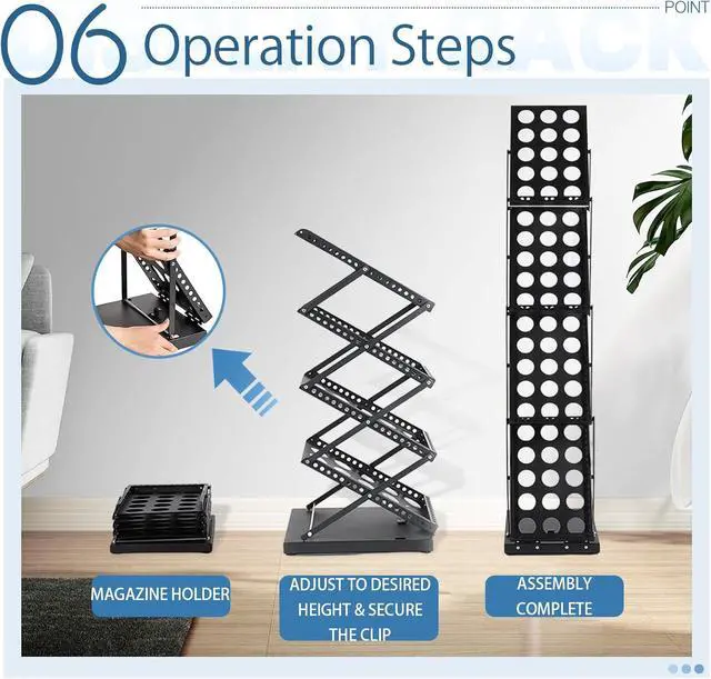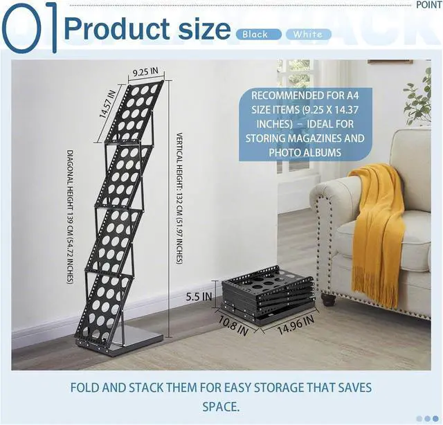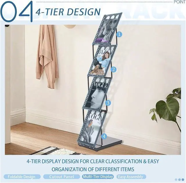Foldable Design: No need to install, convenient and labor saving, our magazine rack saves space and can even be applied multiple times. The foldable design allows you to unfold or store the magazine display stand in seconds. When in use, you just pull the product up and snap the latch on the bottom. When you don't need to use it, you can unlock the latch, press it down.