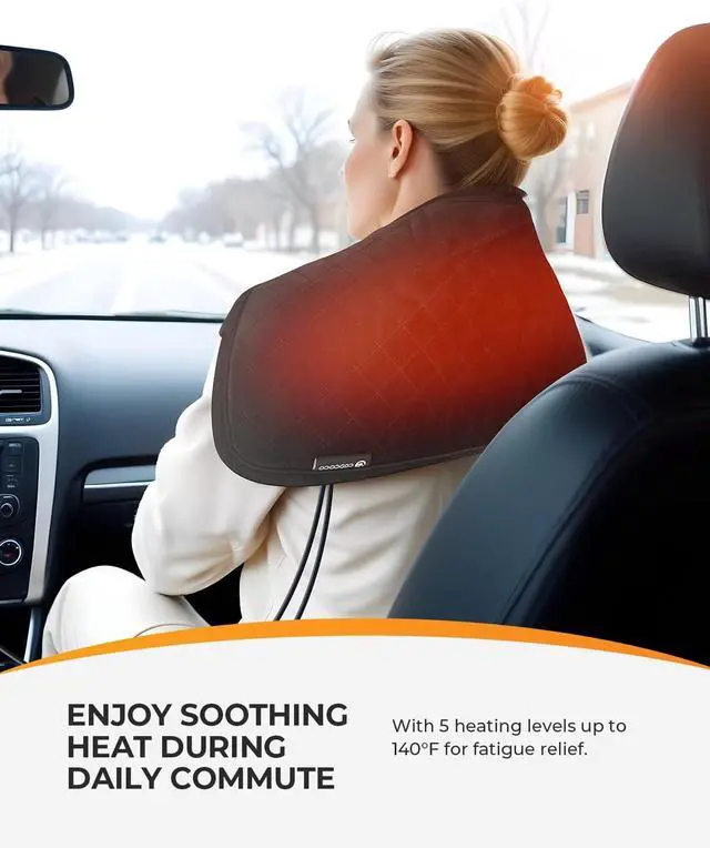 5 Heating Levels: With 5 heating levels up to 140°F. You can enjoy soothing heat during daily driving or traveling.