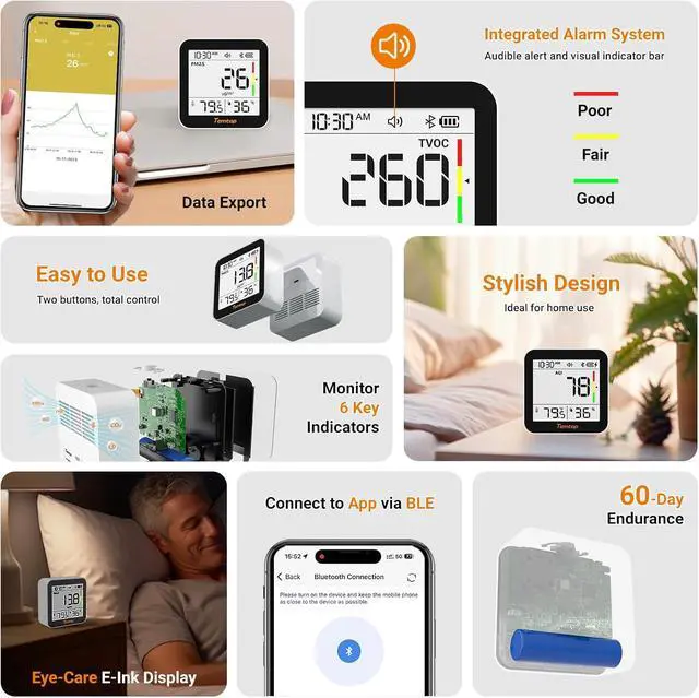 Silent Monitoring & Alerts: The M10+ allows users to disable the buzzer alarm, ensuring uninterrupted peace during air quality monitoring. This feature is particularly beneficial for night-time use, making it an ideal companion in bedrooms without disturbing your rest.