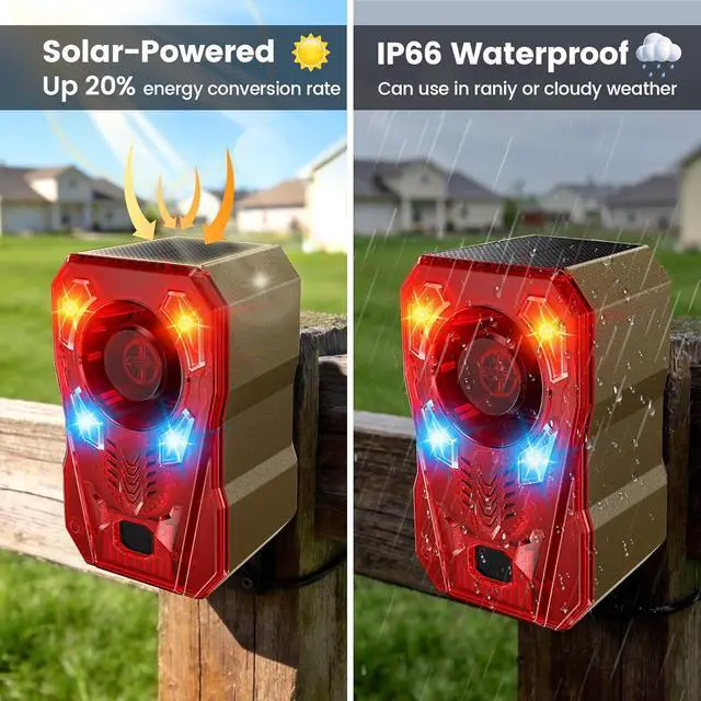 Solar Powered & Waterproof for Durable Outdoor UseBuilt with high-efficiency solar charging and upgraded waterproof construction, this motion detector works reliably outdoors in all weatherrain, snow, or sunlight. No complicated wiring or frequent battery changes required. It is sturdily built to resist damage and last for years, solving your concerns about short product life and high maintenance costs.