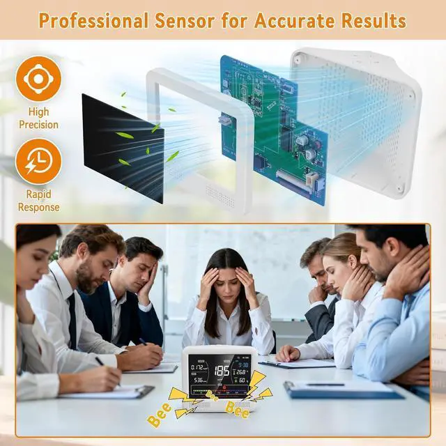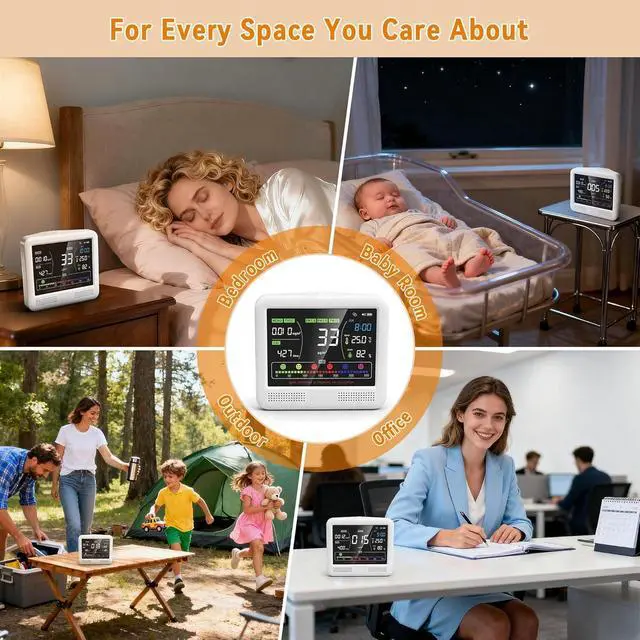 Portable Rechargeable Air Quality Monitor: With a built-in rechargeable battery, this portable air quality monitor is perfect for homes, offices, baby rooms, RV travel and camping, allowing you to monitor air quality anywhere