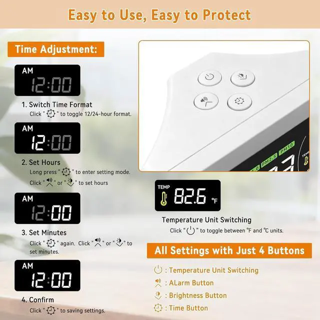 Easy Monitoring: The large screen displays CO2 concentration, particulate matter levels, temperature, humidity and AQI status in one glance. Designed for simple and convenient daily air quality monitoring
