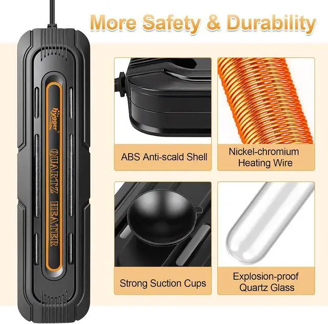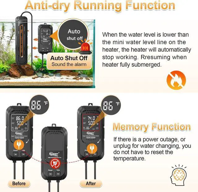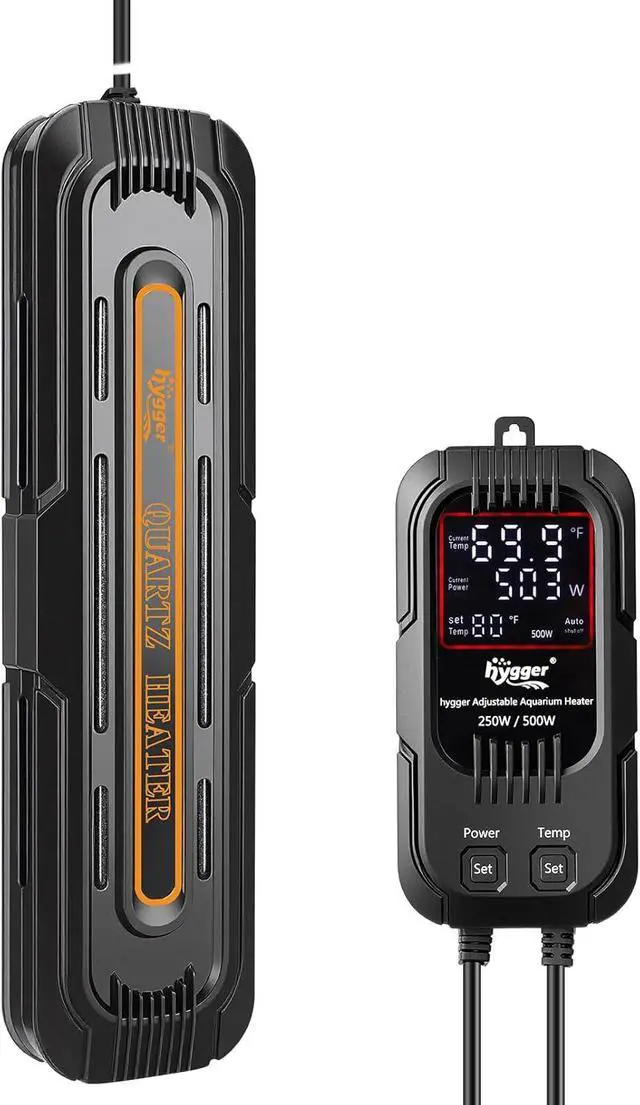 LED Digital Display - The external temp controller of this aquarium heater can accurately display the current water temperature, set temperature, current operating power, set power, and error codes. The red light indicates heating, and the white light indicates constant temperature. Simply press the setting button to easily adjust the target temperature and switch the heaters power.