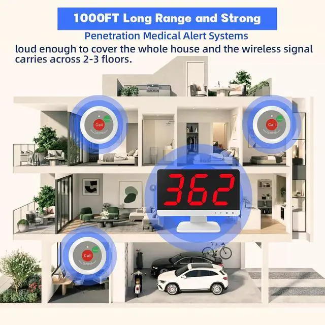 Plug-and-Play Setup: Experience true simplicity with a system ready to use right out of the box. The display receiver and call buttons come pre-pairedjust plug in, press the button, and it works