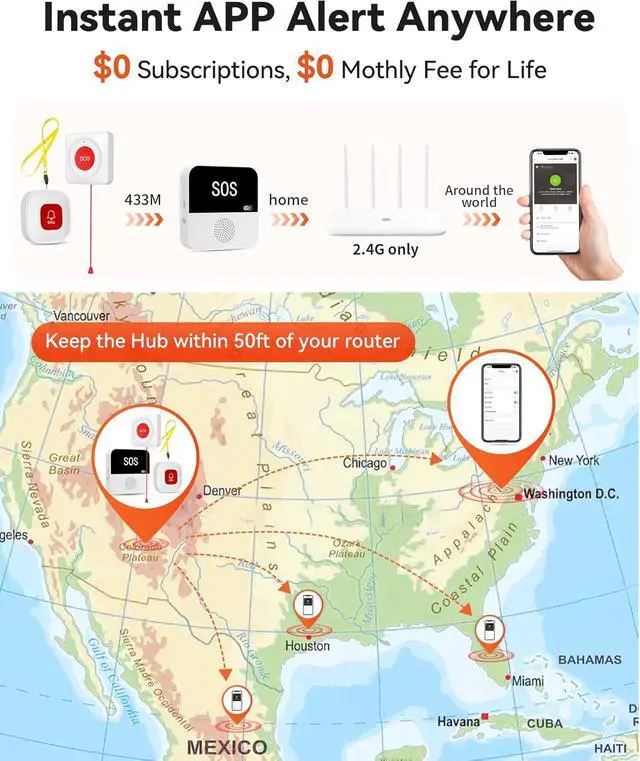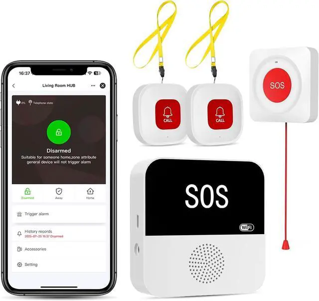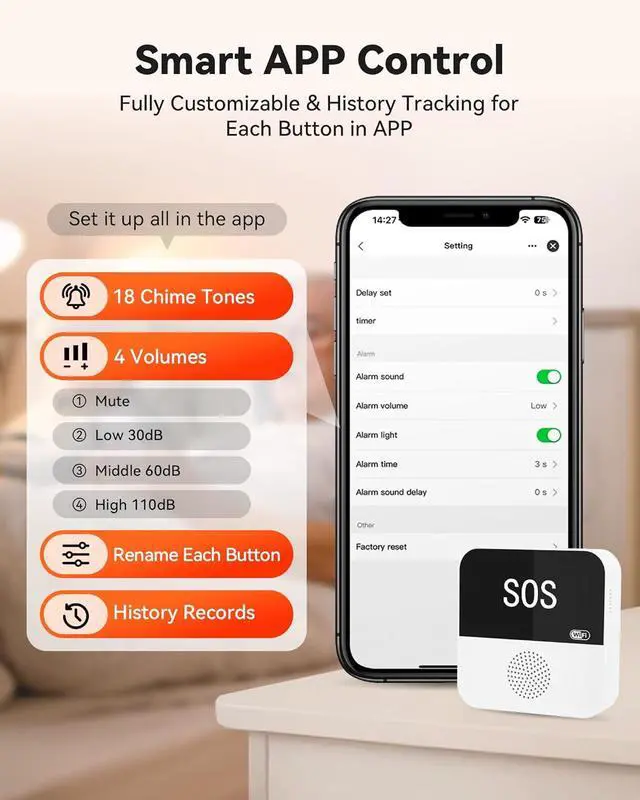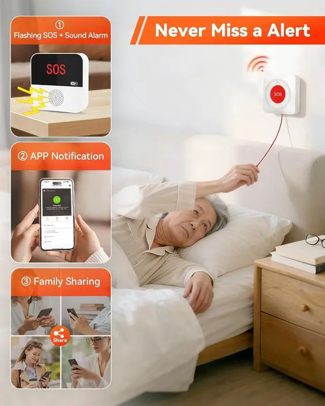 Multi-Channel Instant Alerts: Press any panic button to trigger a loud alarm with flashing lights and instantly receive an app notification on your phone. Share notifications with family via the app;