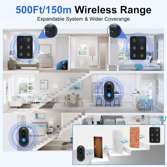 Volume & LED Number Display: The receiver is equipped with 38 kinds of ringtones of different styles for your choices. You can programme each panic button to its own sound. 5 levels volume adjustable, from silent to noisy (0 db to110 db), you don't have to worry about not hearing the sound. The LED indicator can display different numbers to help you easily distinguish which room is calling.