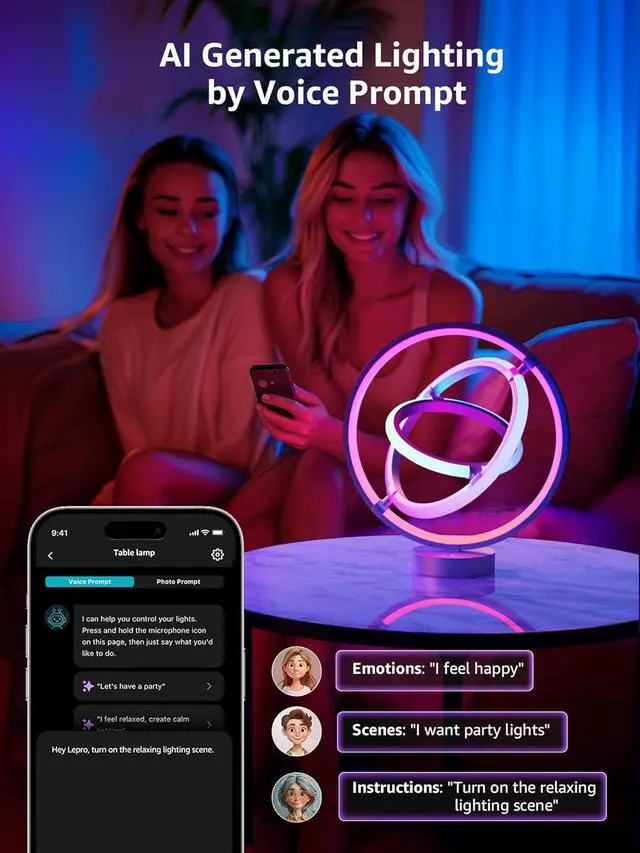 [Upgraded Voice Control-Easy to use] - No manual setup or preset scrolling, just tell the app what you want: ignite holiday vibes, elevate parties, or mirror your favorite movie and game themesand get perfect lighting in seconds.