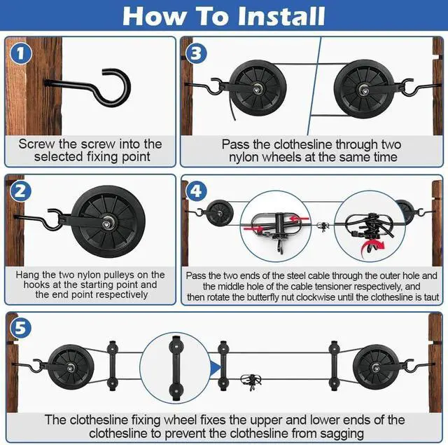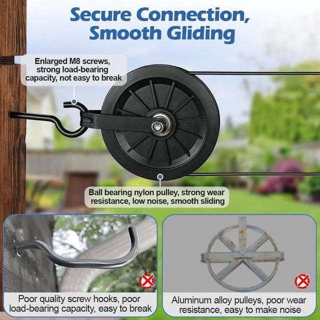 Smooth & Quiet Operation: Made from nylon material, our clothes line pulley are designed to withstand heavy use, providing exceptional durability. these pulleys reduce noise and vibration, ensuring a peaceful clothes-drying experience. Enjoy the simplicity and quiet of natural drying, whether in your backyard or on your balcony
