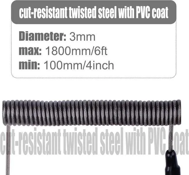 ANTI THEFT: The lock head is made of super-strong stainless steel, can be rotated in 360 degrees. The cable is made of cut-resistant twisted steel with a PVC coat, the extra length of 6.5 ft fully meets your daily demands.