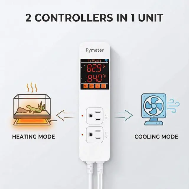 Durable & Easy Temperature Setup: Simply drag the sliders in the app to set the ON/OFF temperature range for each outlet in seconds, with a clear LED display, calibration support, and dual sensors ensuring stable and reliable temperature control.
