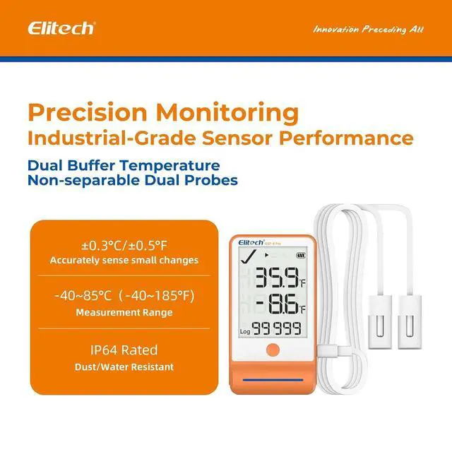 Dual Power Options - GSP-6Pro is powered by AA battery, allowing continuous data recording for up to one year at a 15-minute interval with the alarm turned off at normal temperatures. And USB power option is available for use when the battery is flat.