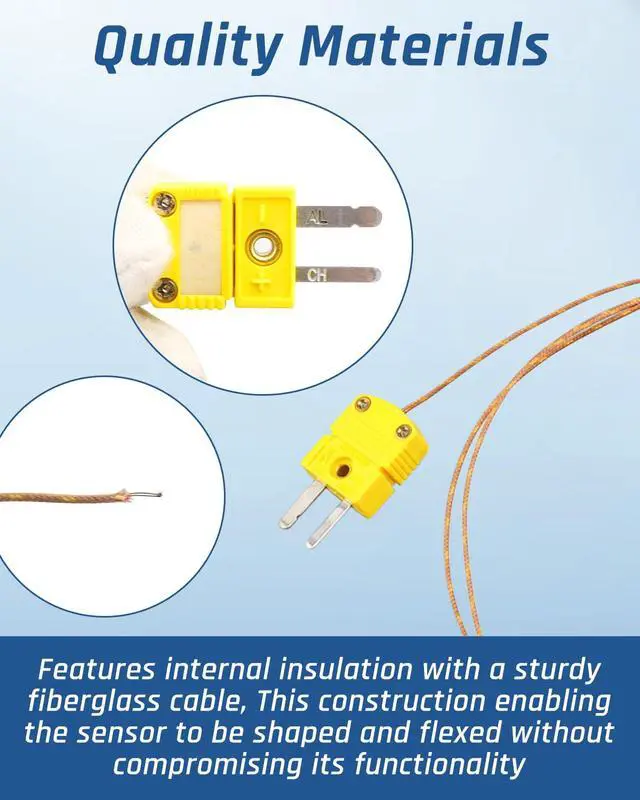High-strength Material: This thermocouple probe sensor is made of glass fiber, which allows the thermocouple to be formed and bent without worrying about breakage. It has good insulation, heat resistance and waterproofness, stable performance, and can greatly extend the service life of the product