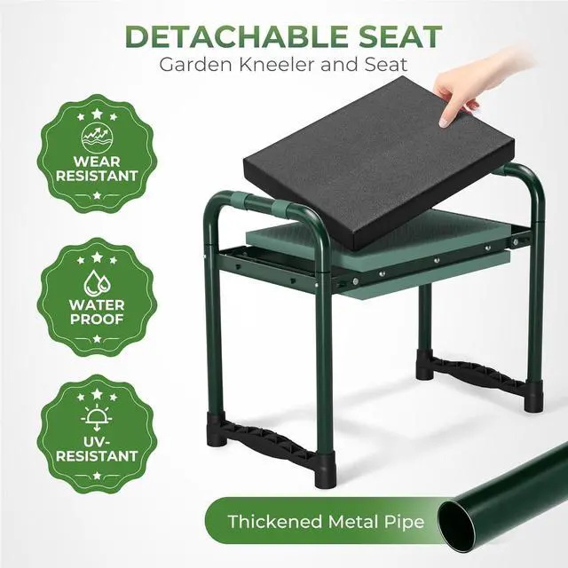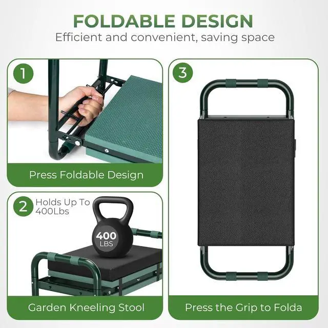 Sturdy Steel Frame & Excellent Weight Capacity; Sturdy Steel Frame & Excellent Weight CapacityEngineered for durability, this heavy-duty garden kneeler and seat features a reinforced steel frame that supports up to 400 lbs, far exceeding standard garden stools for gardening. The sturdy garden kneeling bench with handles provides essential support for kneeling down and standing up safely, making it an ideal kneeling device for gardening for those with knee or back concerns.
