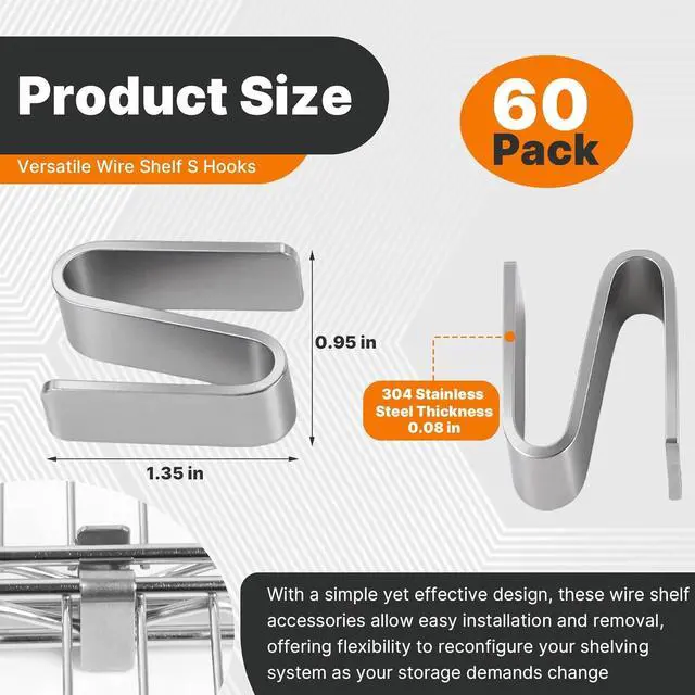 Practical 60 Pack Wire Shelf Accessories With a simple yet effective design, these wire shelf accessories allow easy installation and removal, offering flexibility to reconfigure your shelving system as your storage demands change