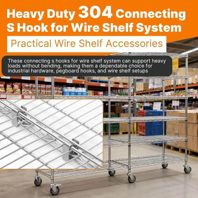 connecting s hook for wire shelf system is the ultimate solution for anyone looking to expand, secure, or customize their shelving setup. Made of heavy-duty 304 stainless steel, these wire shelf s hooks are built to resist rust and withstand heavy