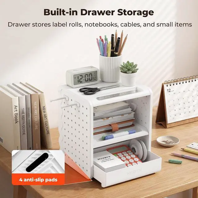 Drawer Storage: The desk drawer organizer is perfect for label rolls, notebooks, printer power cords, and small accessories. Grooves and side holes help manage pens, tools, and cables, organized
