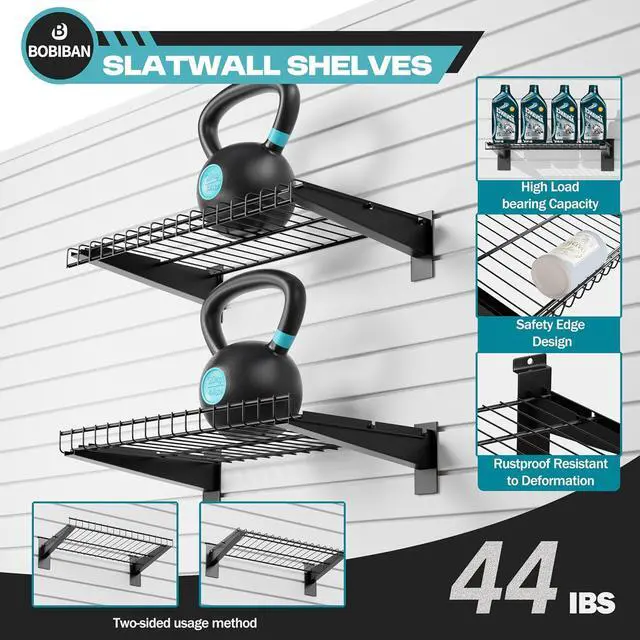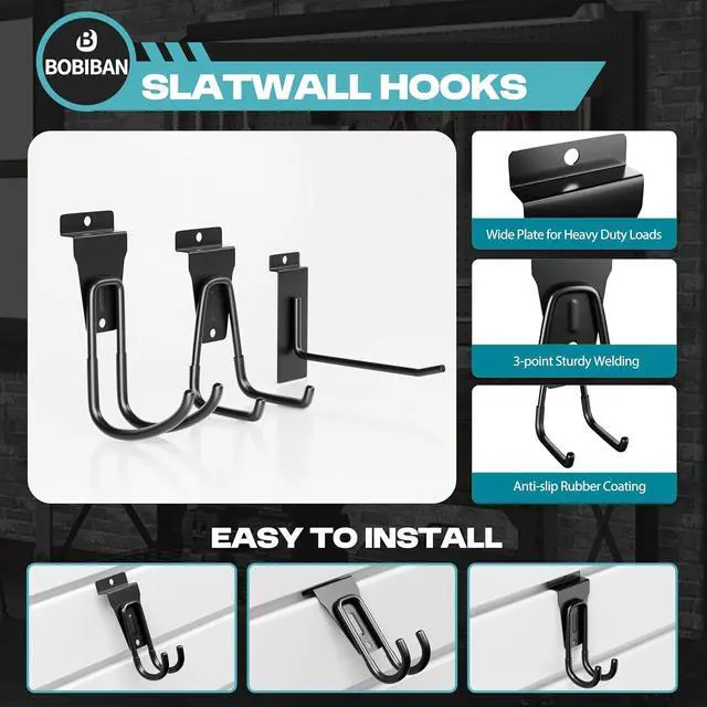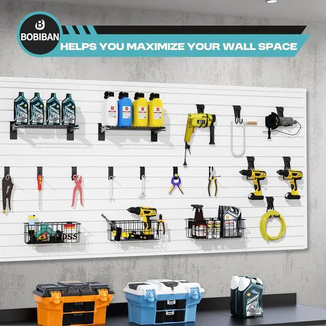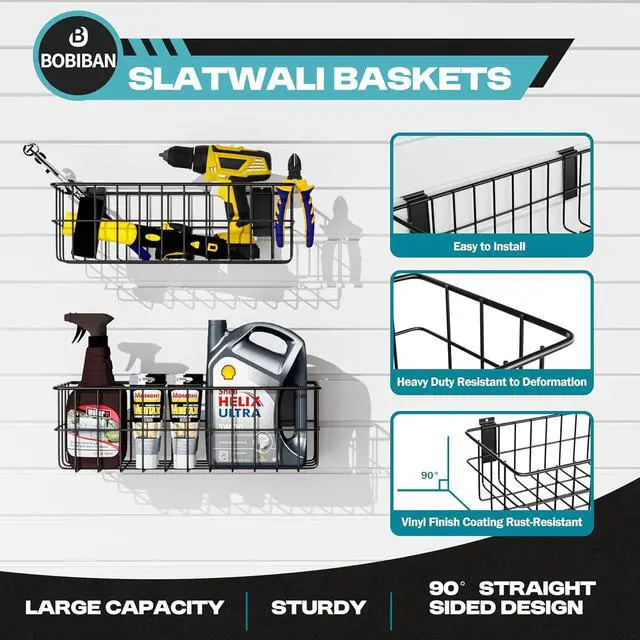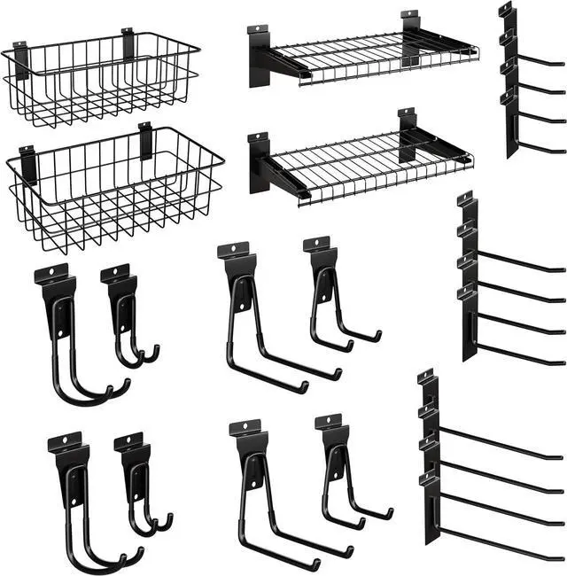 WIDE APPLICATION: These slat wall accessories are suitable for garages, retail stores, warehouses, laundry rooms and closets. These slat wall baskets, hooks and shelves maximizes vertical storage space. Featuring a unified black finish, it seamlessly integrates with many modern decors, offering excellent storage functionality while enhancing the overall aesthetic appeal of the interior.