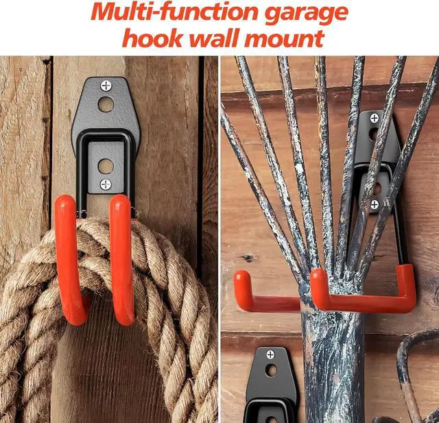 DURABLE AND STURDY: Our heavy-duty garage hooks are crafted from solid steel, making them resistant to bending and deformation. They feature a non-slip PVC rubber coating on the surface, which is not only waterproof and rustproof but also provides a strong grip, ensuring no scratches on the surface of items. Made of thickened plates, the back plate is further reinforced with a three-point welding process, which further enhances their durability and sturdiness