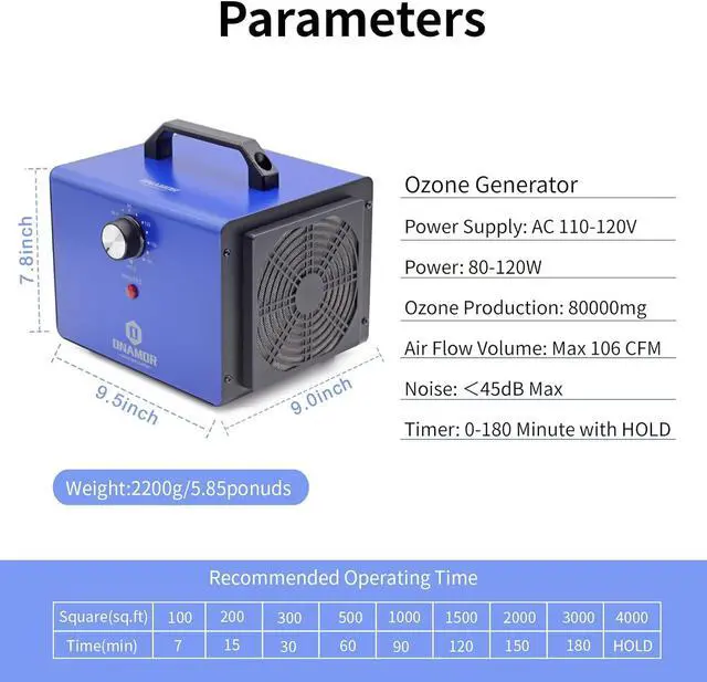 Amazing Odor Removal Effect: This ozone machine is suitable for your apartment, basement, car, office, pet area, etc; An ideal ozone odor eliminator to help you easily clean smells of smoke, pet urine, furniture, cooking and any unpleasant odors, bring back the freshness to your space