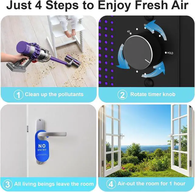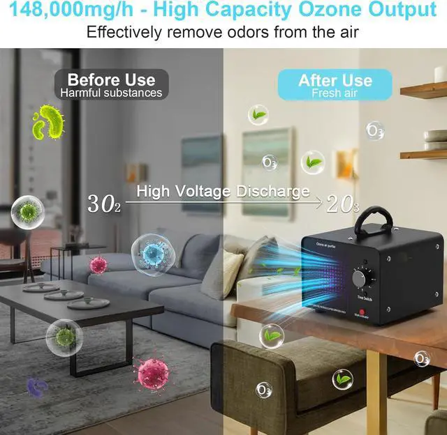 Note: Ozone has a strong and pungent odor. Make sure no people, pets, or plants are present during use. Before treatment, remove the source of the odor. After treatment, ventilate the area for about 1 hour to allow ozone to convert into oxygen.