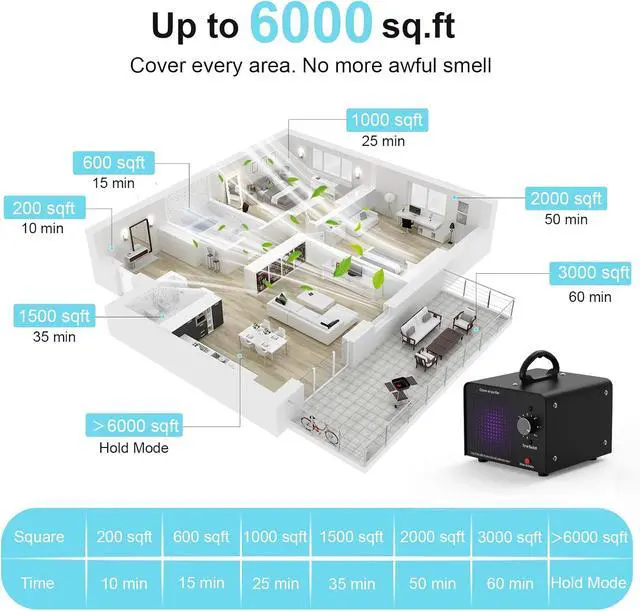 Safety Reminder: Use this ozone generator in UNOCCUPIED spaces only! Ensure no people, pets, or plants are inside during treatment. After use, ventilate the area for 3060 minutes before re-entry. (Not available for sale in California. )