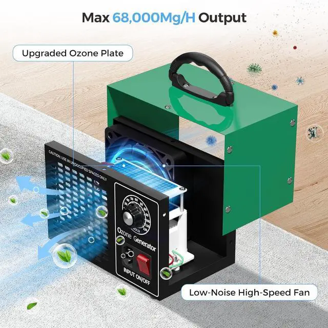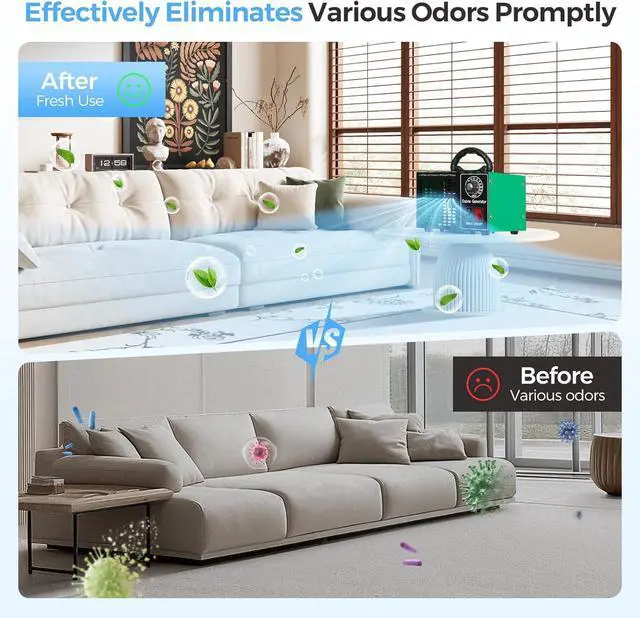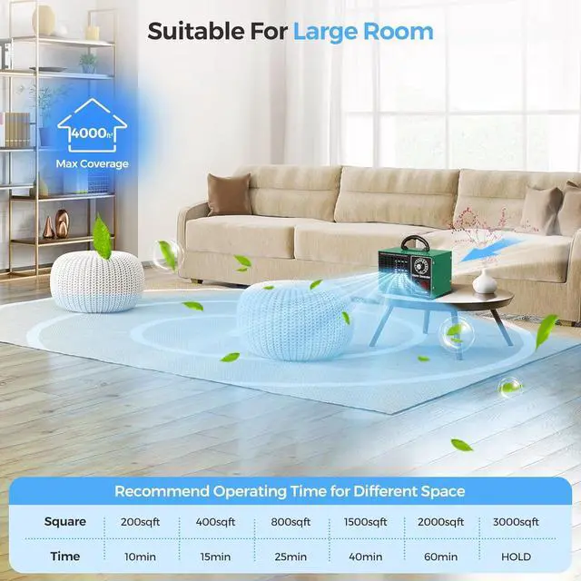 Rich application scenariosOzone generators are well suited for various enclosed spaces such as cars, boats, trash cans, kitchens, bathrooms, basements, etc. Please note that the machine must be used in an enclosed space and must be kept away from people, and plants while it is operating.