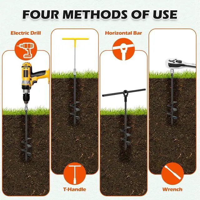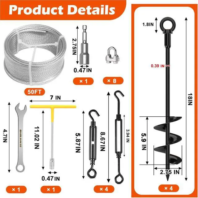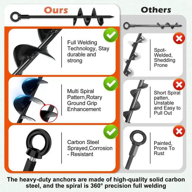 Quick & Secure Installation: Install easily with included T-handle wrench (soft soil) or impact drill (firm soil). Sharp-tip spiral design with detachable eyelets ensures smooth penetration in soil, sand and grass. For best results, lightly moisten dry soil before installation