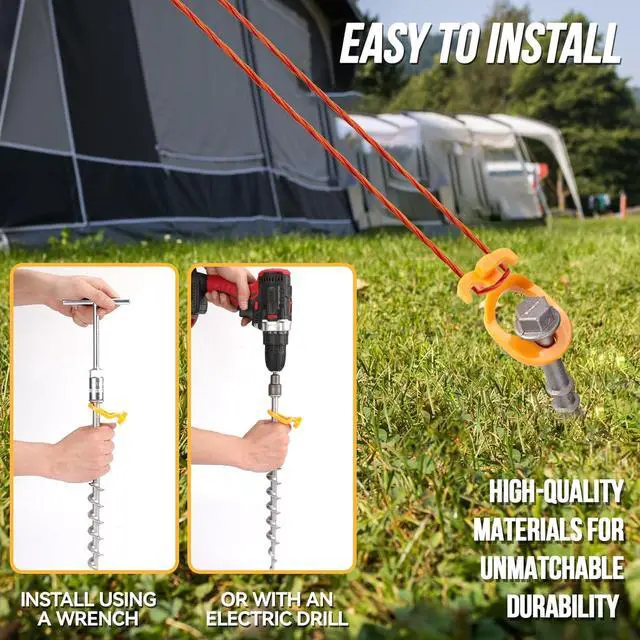 PERFECT SIZE & QUANTITY: Set includes 16 PCS screw in tent stakes, a sleeve and T-shaped hand crank each measuring 14 inch, offering the right length for deep ground anchors, making them versatile camping stakes or trampoline anchor